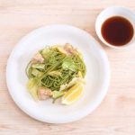④鍋(18cmの片手鍋推奨)にうどんつゆと3を入れ、煮込みます。沸騰したら弱火にし、落し蓋をしてさらに10分煮込みます。※つゆが足りなくなったら足してください。